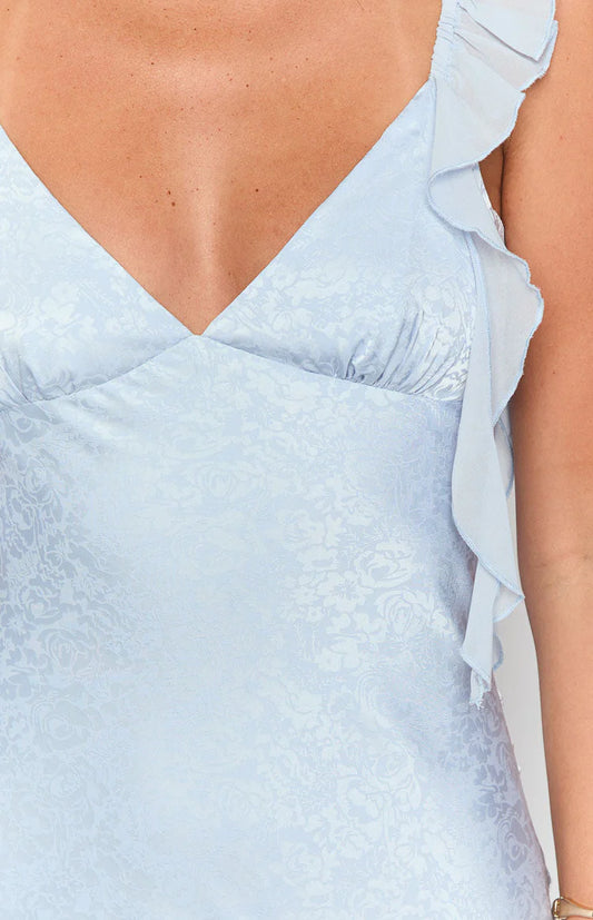 Romantic Light Blue Jacquard V-Neck Ruffle Tiered Open-Back Floor-Length Mermaid Prom Dress